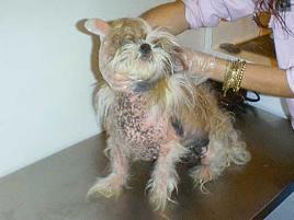 | Adopted this is melony as you can see she is in VERY BAD SHAPE, this is the worst, nastiest, most discussing, I cant even begin to tell you what I really want to say. Anyone who lets an animal get to this point should be in jail. |