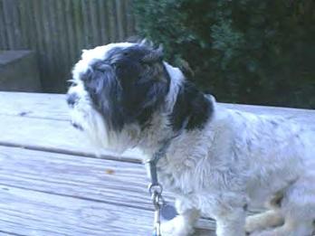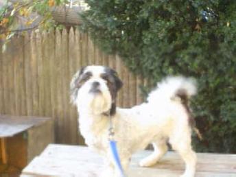 | as you can see he is cuty, he isnt a pure shihtzu. he does have the shihtzu head his temp is great. he was bought at the darthmouth mall pet shop for 900.00 and was given the wrong AKC papers. the papers say he is a gl/wh lapso. everything else says shih tzu on it funny gold/wh the dog is clearly black and white |